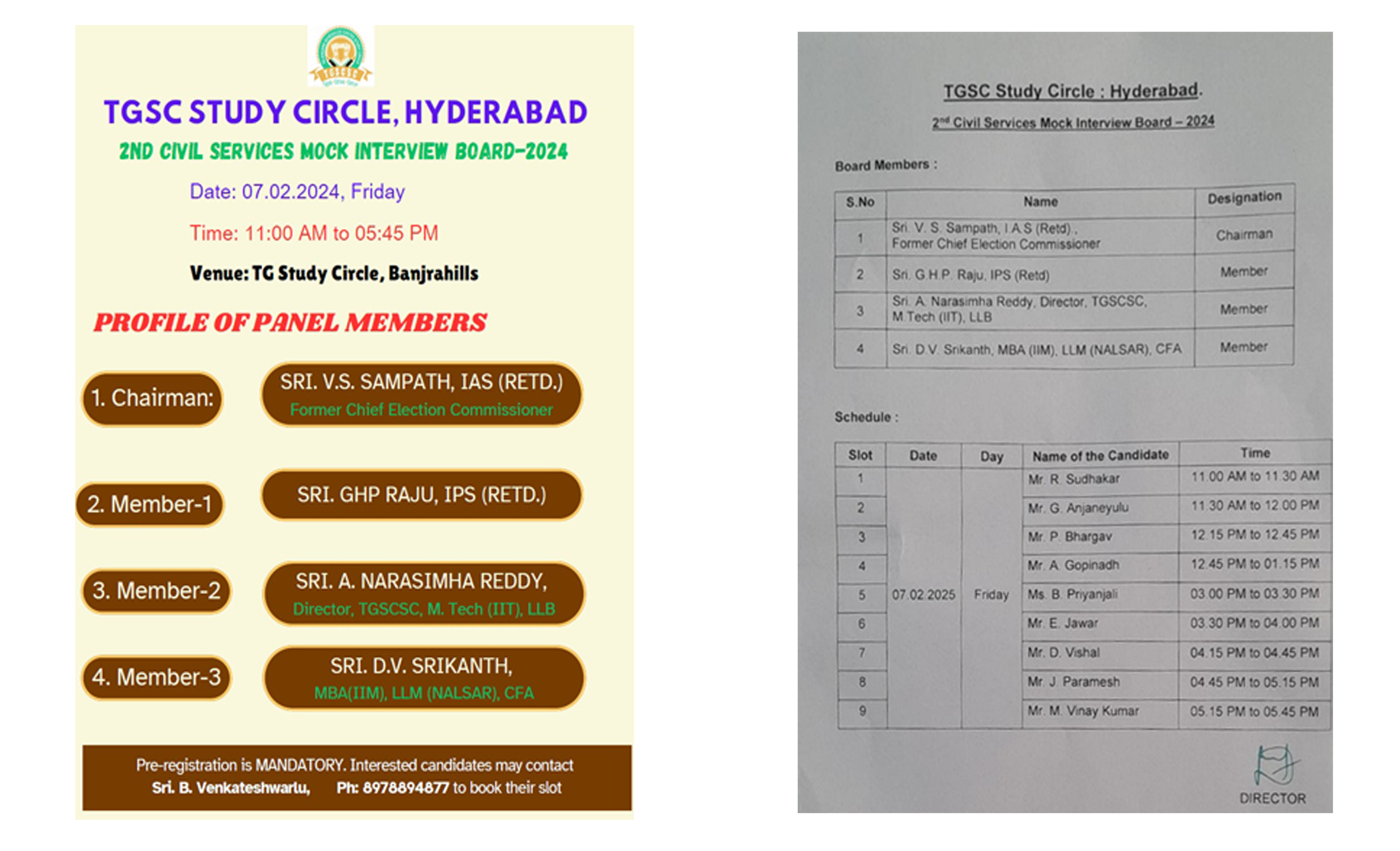 2nd Round of UPSC Mock Interviews @ TGSCSC scheduled on 07.02.2025